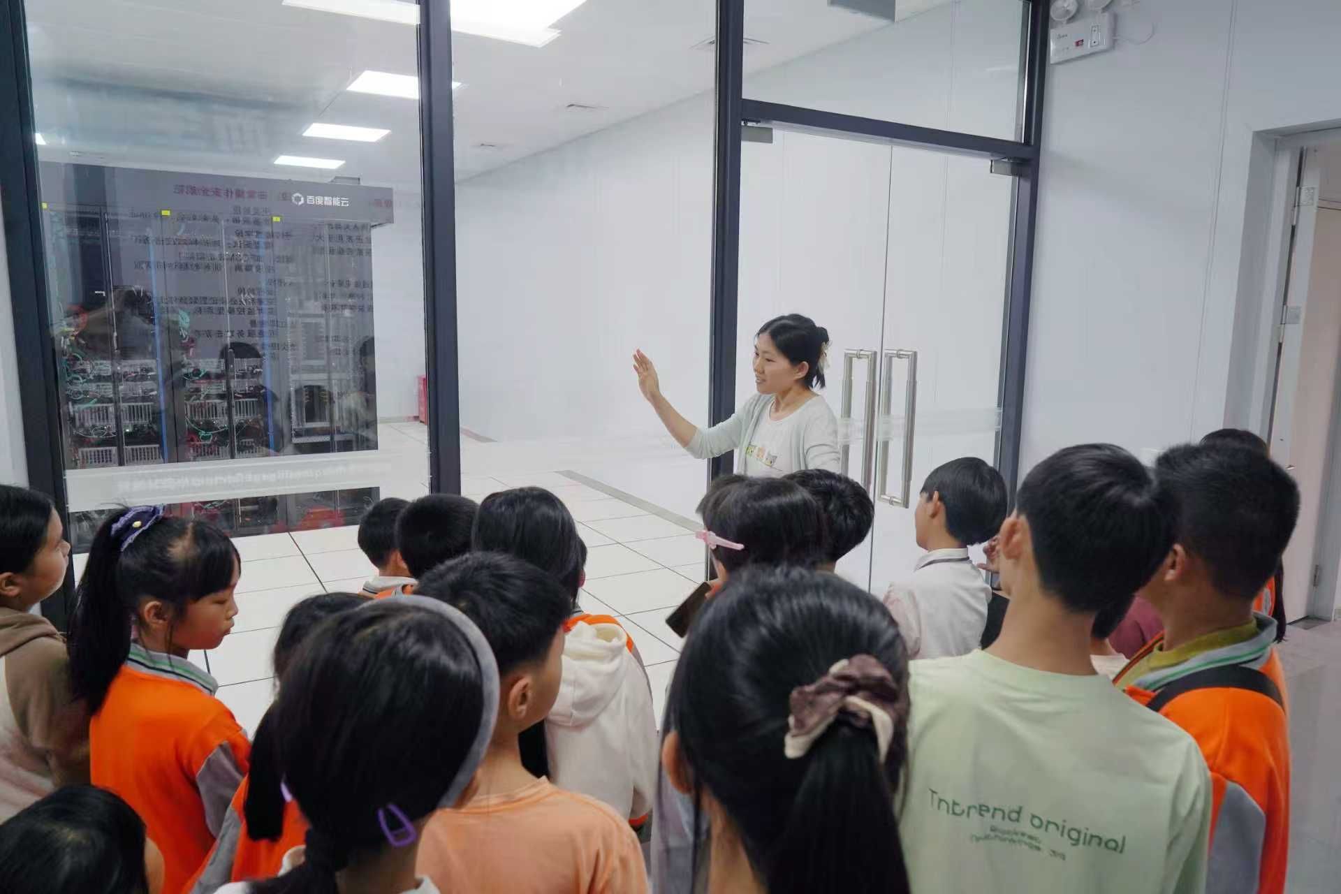 在职业体验中心专业教师的引导下,同学们首先参观了人工智能教育海南省职业体验中心的ICT产教融合基地。基地内设有前厅展示区、人工智能职业体验区、数据采集和数据标注区、软件测试区等多个功能区域,在前厅展示区,虚拟数字人和智能服务机器人引起了孩子们的浓厚兴趣。他们一边认真聆听讲解,一边动手参与互动体验,对人工智能技术应用的有了更为直观的认知。