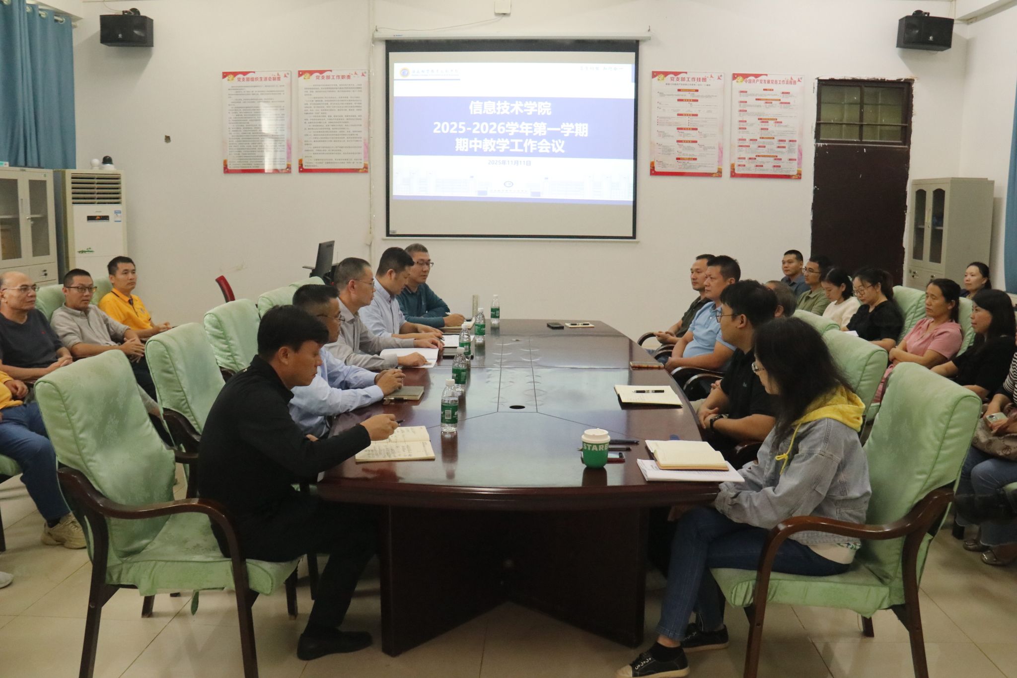 11月11日下午,太阳集团tyc539在4-213教室召开2025-2026学年第一学期期中教学工作会议。会议由党政办负责人韩昌豪主持,太阳集团tyc539全体教职工参加。