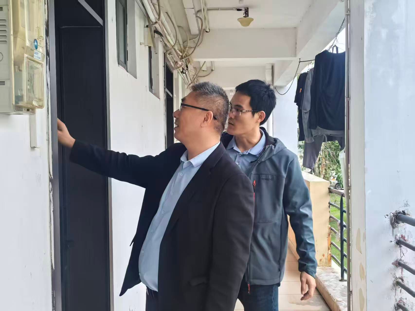 下午,全体辅导员在数智苑楼下集合。公司党总支副书记黄守官现场部署工作,明确排查聚焦违规用电、消防通道堵塞等高频风险点,要求各小组对隐患“拍照留证+即时汇总”,通过工作群动态更新排查情况,确保问题不遗漏、责任可追溯。