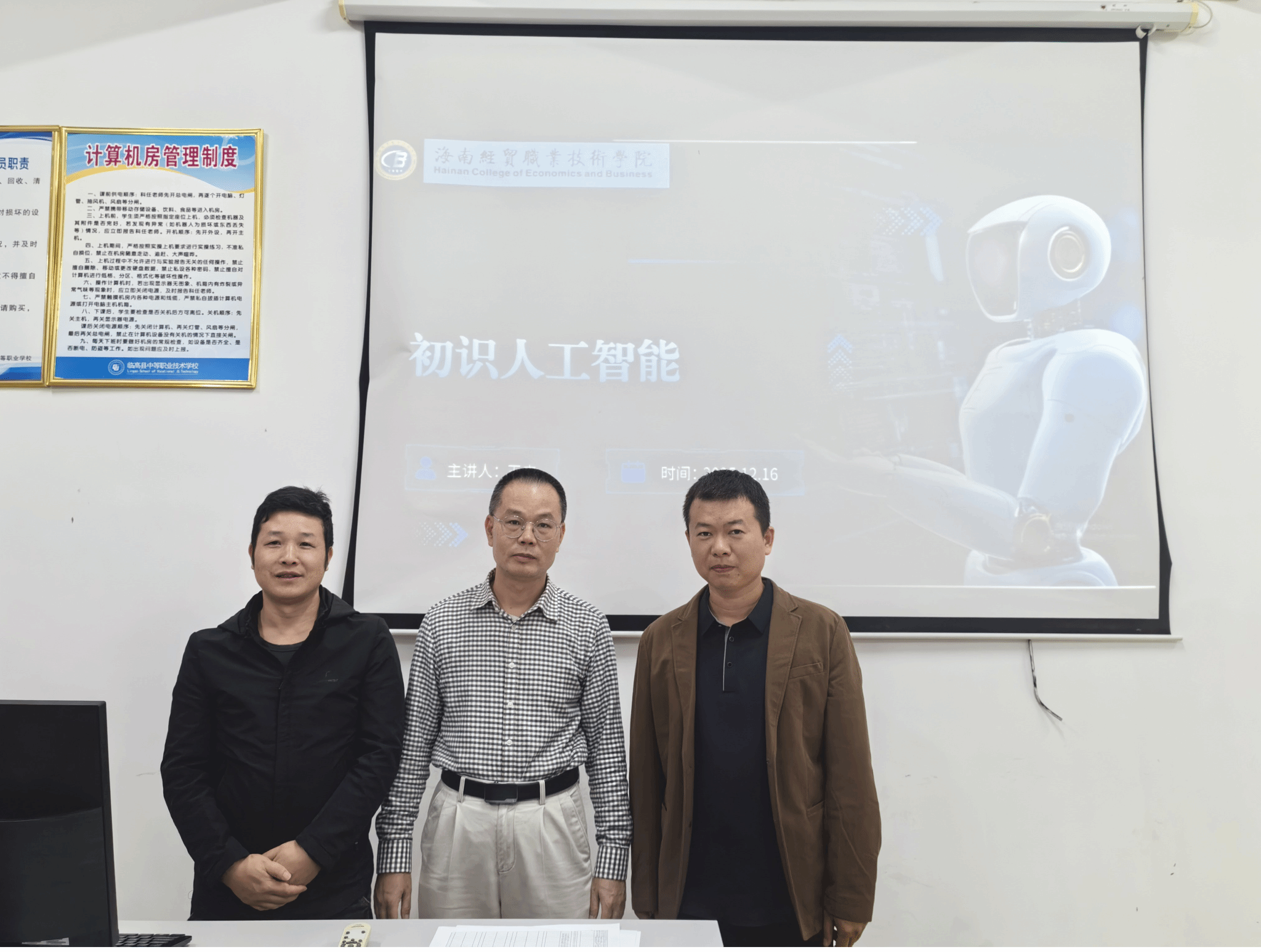 为深入贯彻落实省委人才办《关于开展2025年专家团队巡回帮扶活动的通知》要求,推动人工智能技术与职业公司产品深度融合,12月16日下午,应临高县中等职业技术公司邀请,公司人工智能领域专家王忠教授、康东副教授专程前往该校,开展了一场主题鲜明、内容扎实的AI教学能力提升培训。临高职校全体专业课教师及教学管理人员齐聚一堂,共同参与了此次学习。