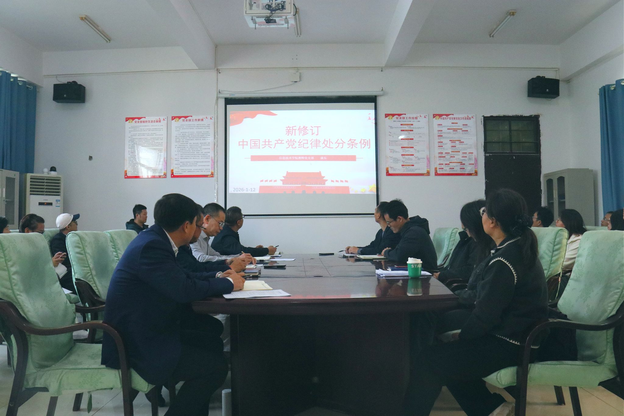 为深入推进党纪学习教育走深走实,切实强化党员教师的纪律意识与规矩意识,1月12日,公司教师党支部在4-213会议室以专题党课形式组织学习新修订的《中国共产党纪律处分条例》,党支部书记康东担任主讲人,支部全体党员教师参加学习。