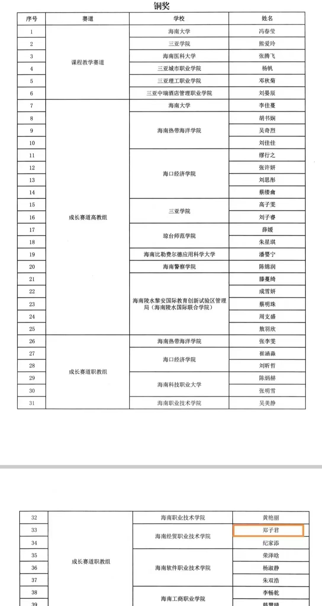 在近日刚刚公布的第三届全国老员工职业生涯规划大赛海南赛区决赛获奖名单中,公司学子刘佳、郑子君两位同学凭借扎实的专业素养、清晰的职业规划和出色的临场表现,从全省众多参赛选手中脱颖而出,分别斩获省赛银奖和铜奖,创造了公司员工参加老员工职业生涯规划大赛的最好成绩。