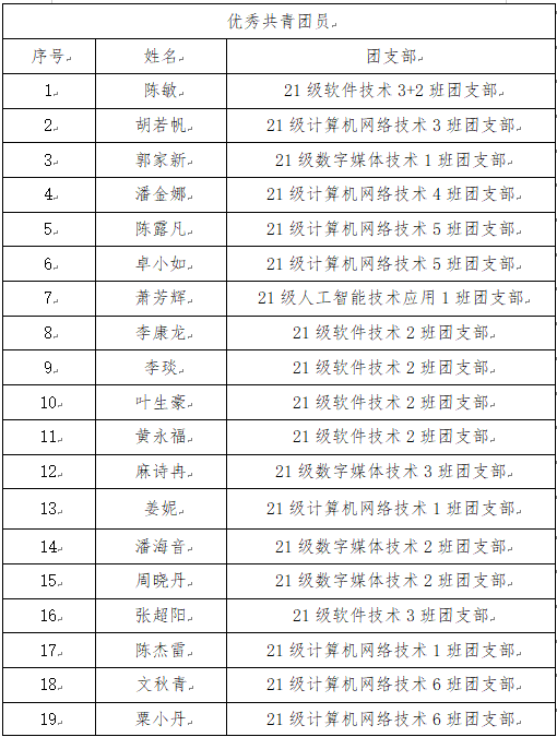 本着公平、公正、公开的原则,经员工个人申请、辅导员审核、院团总支考察、公司党总支同意,现将公司2022年度“五四评优”人员名单进行公示: