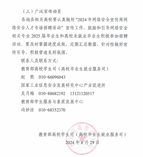 关于开展2024年国家网络安全宣传周网络安全人才专场招聘活动的通知